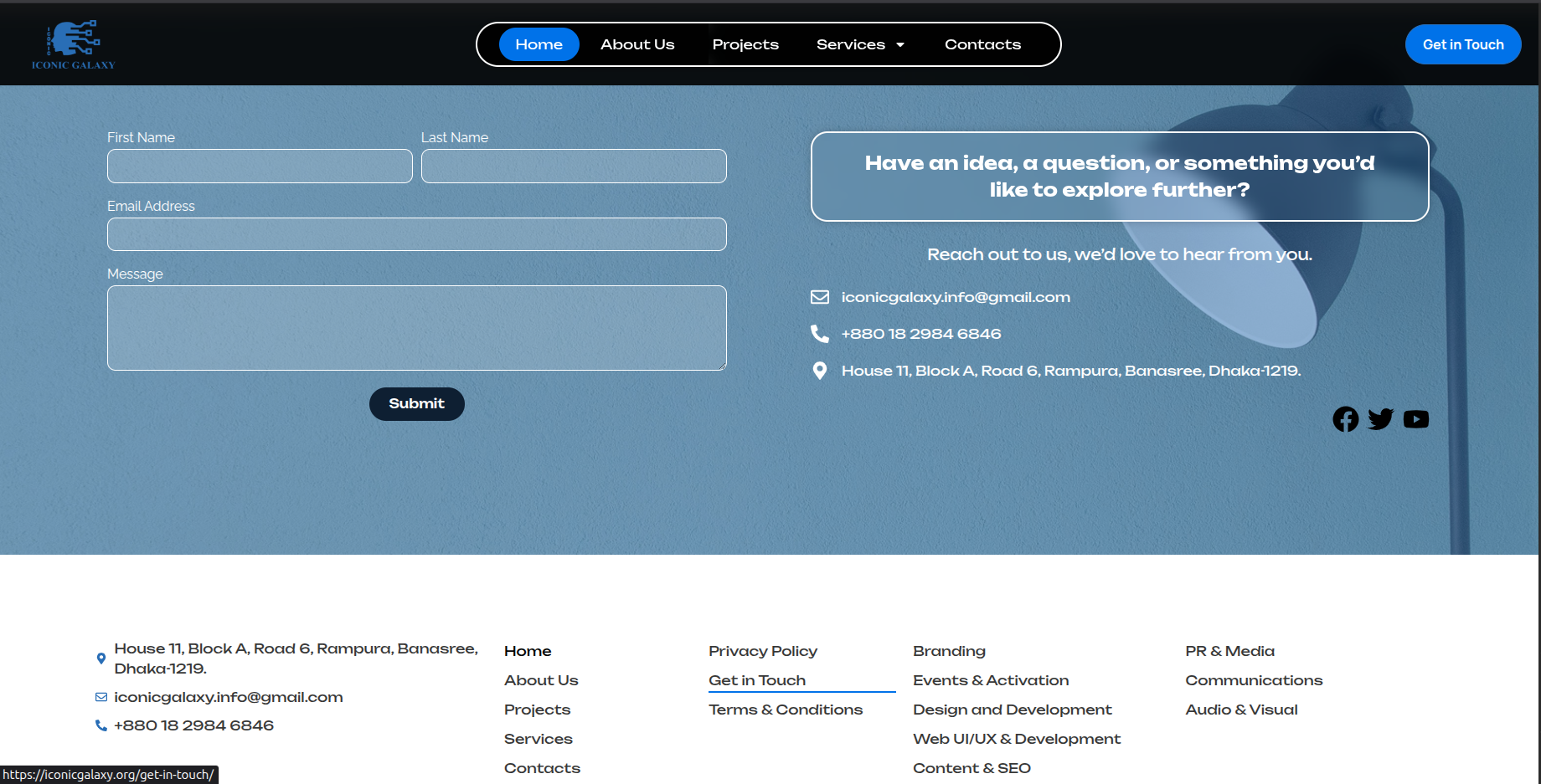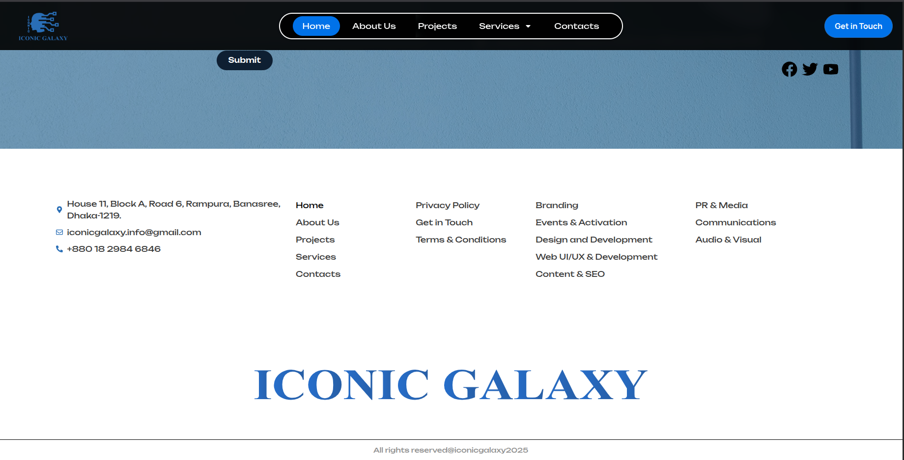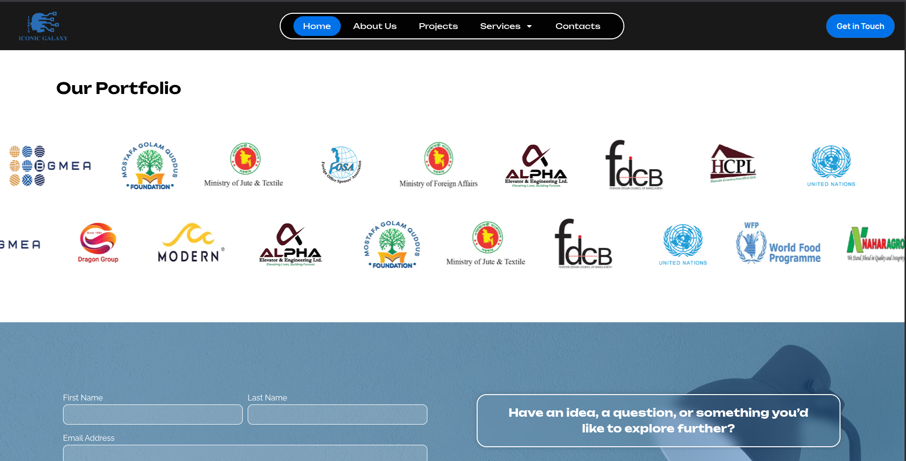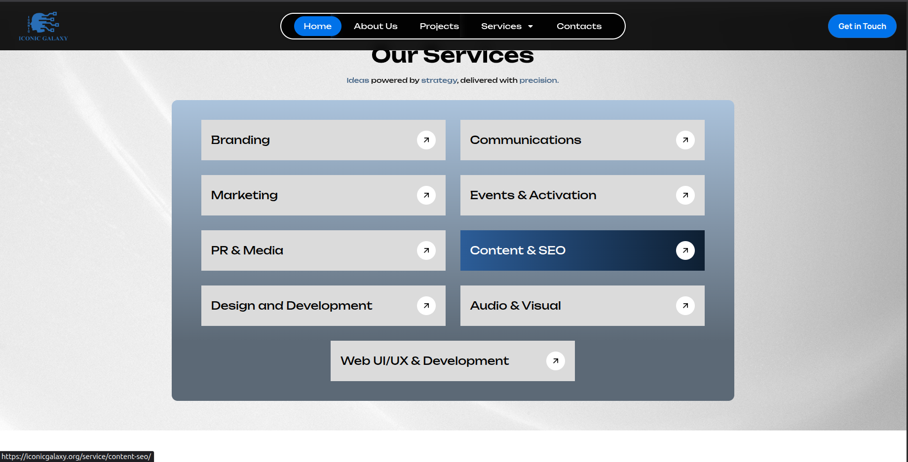 Iconic Galaxy is a full-service creative and marketing agency offering end-to-end solutions including branding, marketing, PR, event management, content creation, and web development. The platform presents the company as a one-stop destination for businesses seeking integrated, results-driven corporate solutions.